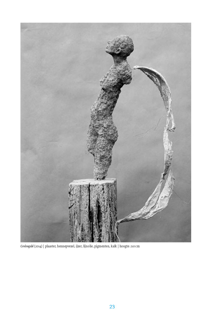 Bij het beeld "Gevleugeld" van Anne-Marie Peeraer